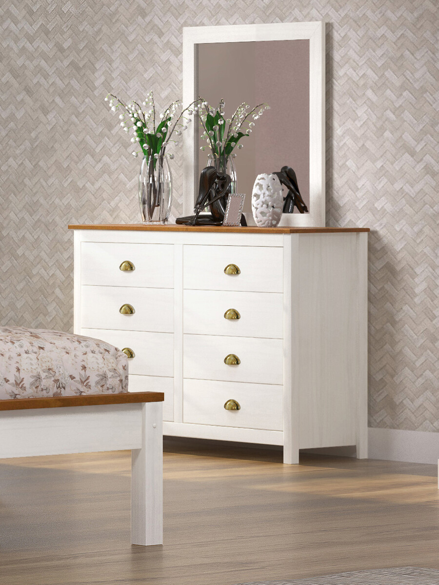 Möbilia Kommode weiß lackiert, braune Deckplatte 125 cm | 19020023