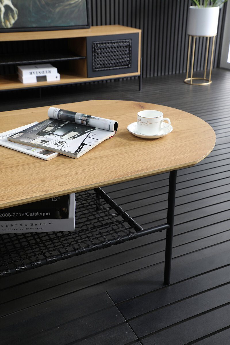 SalesFever Couchtisch 105x55 cm Natur/Schwarz, MDF, Metall, Kunststoff | 396254